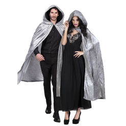Deze Gothic Cape met capuchon Dawn Grijs is gemaakt voor verschillende party’s zoals een Halloween of Gothic party. Deze schoudermantel is vervaardigd uit 100% velours de panne stof. Deze cape is een rijke aanvulling op bijna elke Halloween outfit. Voor zowel dames als heren draagbaar. De mantel heeft een lengte van 170 cm en valt ruim boven de enkels.