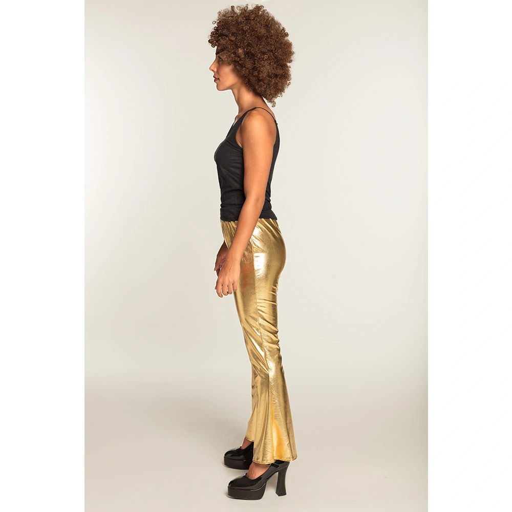 Dames stretch disco broek goud met wijde pijpen