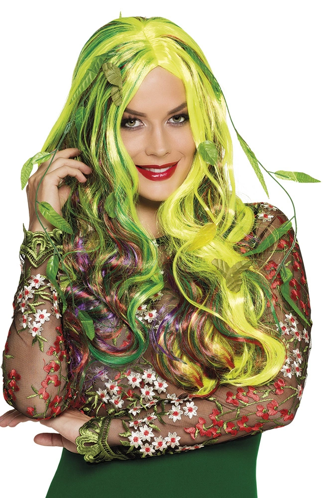 Word een zeemeermin of elf met deze Zeemeermin Pruik en maak je verkleed kostuum helemaal compleet, je kan deze pruik dragen naar bijvoorbeeld het carnaval, een cosplay, Halloween feest en vele andere thema feesten of gelegenheden. De Zeemeermin Pruik is gemaakt van mooi lang golvend synthetisch haar, en heeft de kleuren Groen, geel, bruin, paars, rood en kunstof blaadjes voor een unieke look. Let op! synthetisch haar kan vaak niet tegen hitte (tenzij anders is aangegeven) en het gebruik van een krultang word ook afgeraden.
