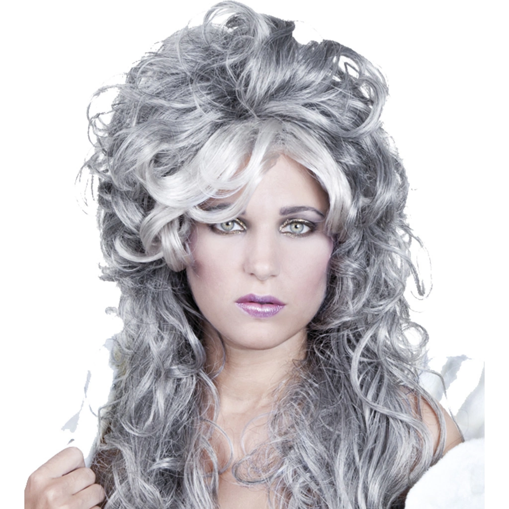 - Model: pruik grijs lang haar, grijze krullen pruik