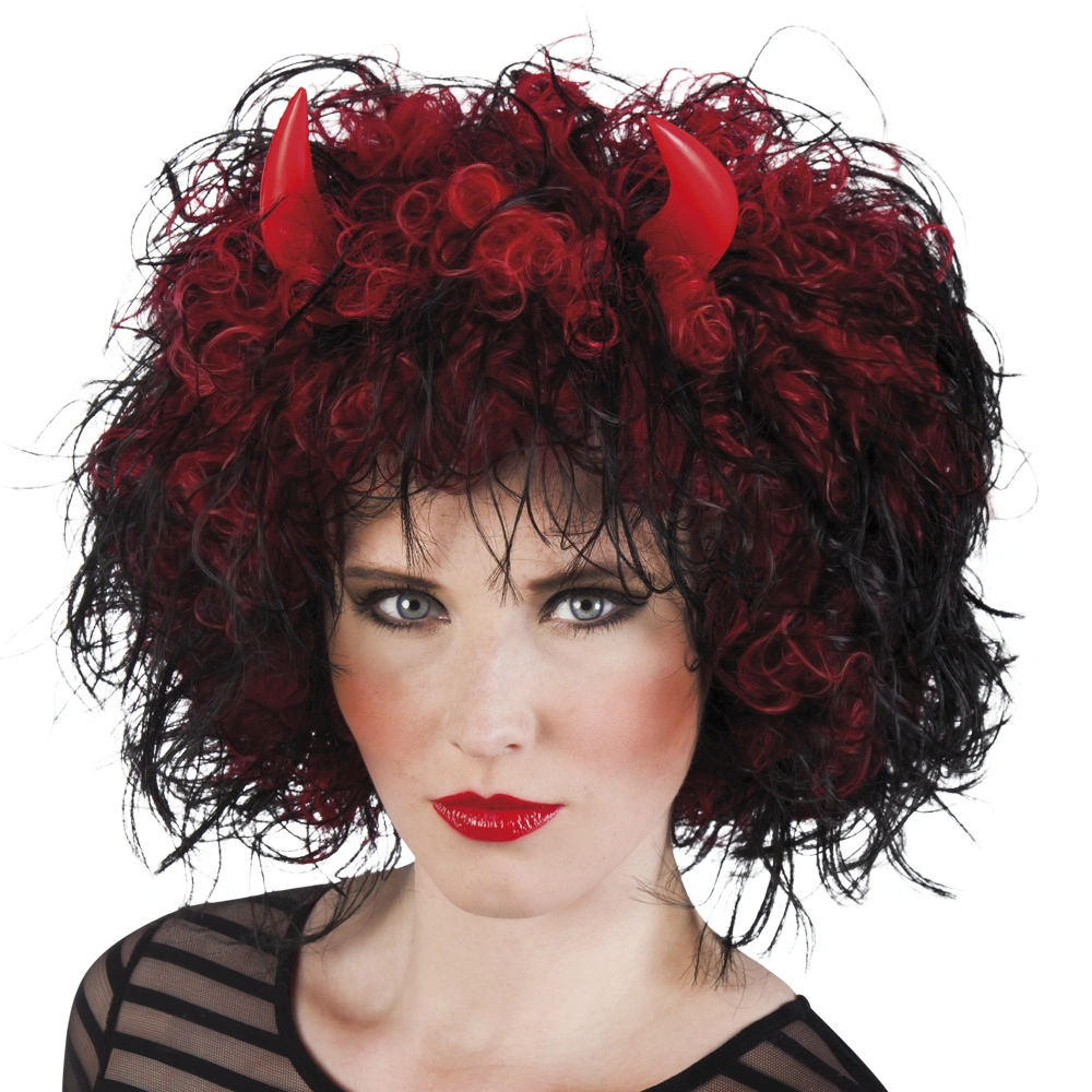 Wil jij duivelpruiken kopen? Wij hebben de Duivelspruik devil’s mistress Voor als je een rode pruik duivel met hoorntjes zoekt op je horror feest.