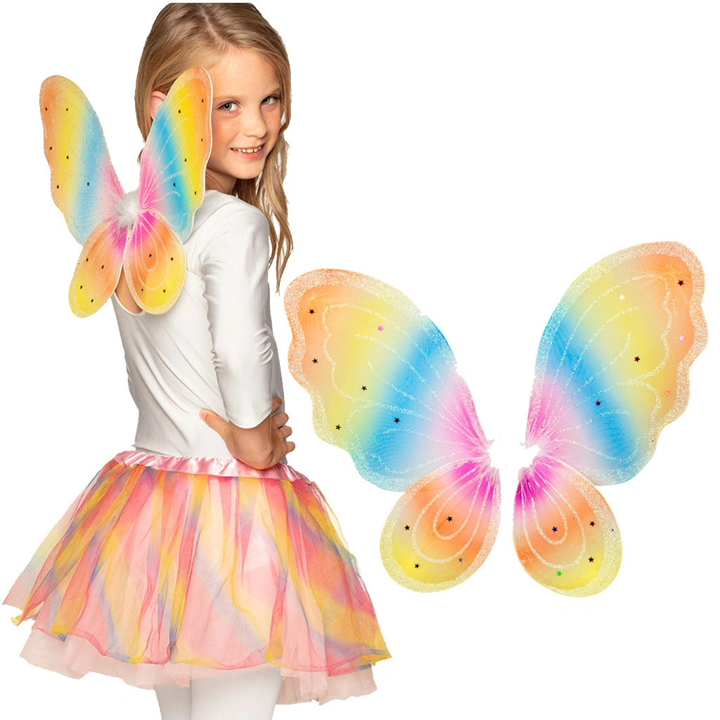 Regenboog Feeën en Elfen vleugels set kind draag realistische vlinder kostuum met vleugels en tutu op het kinderfeestje Welk klein meisjes droomt er niet van, Met deze schattig feeën vleugels en de passende toverstaf wordt deze droom werkelijkheid.