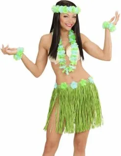 Hawaii Rokje Set Groen 5 delig een coole Tropisch feest of een een te gekke Hawaii party.Â