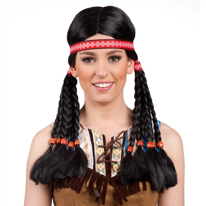 Voor iedereen met zijn liefde voor de indianen, en de inheemse bevolking van zuid en midden Amerika .Deze Indianen pruik Pocahontas met vlechten past perfect bij je indianen kleding voor het carnaval of een thema feest van het wild west . De identieke pruik uit het indianen tijdperk maakt elke indianen outfit compleet deze pruik past niet alleen bij de dames maar door de rekbare kap is deze ook geschikt voor de wat kleinere dames vanaf 8 jaar.