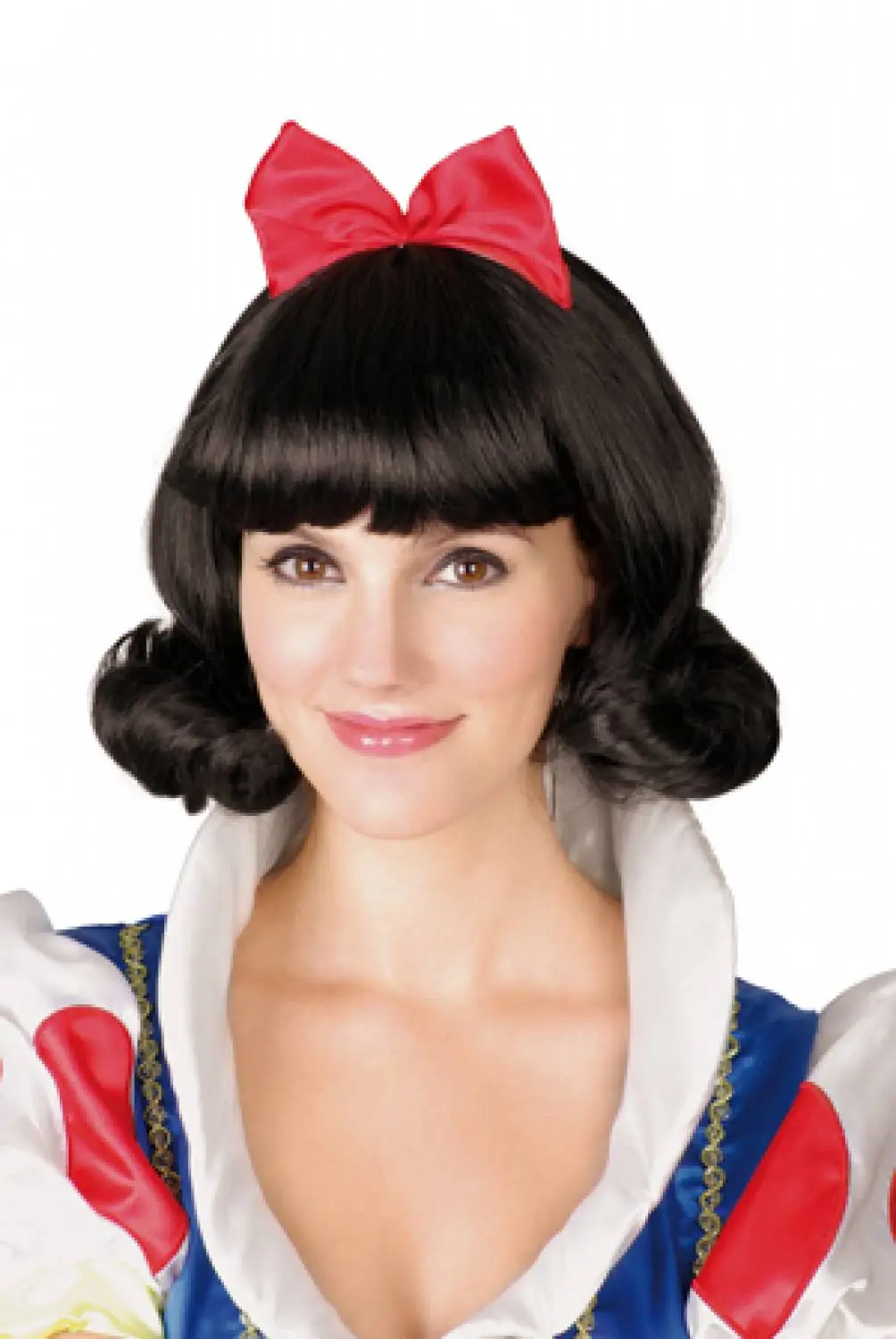 De Sneeuwwitje Pruik volwassenen is elastisch en past om ieder hoofd. Deze pruik is zwart van kleur en heeft een mooie rode strik wat het op het kapsel van Sneeuwwitje lijkt en de wel bekende rode strik maakt het natuurlijk helemaal af. Sneeuwwitje Pruik