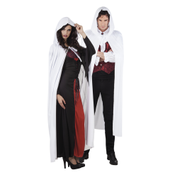 Witte cape met capuchon Dusk maakt je ijzingwekkend mysterieus. Wil jij een luguber uiterlijk hebben? Draag dan deze luxe witte cape met capuchon. Wil je als een intimiderende man of vrouw naar je griezelfeest gaan, draag dan een Halloween witte cape in combinatie met een spannend oogmasker. Je bent volkomen onherkenbaar.