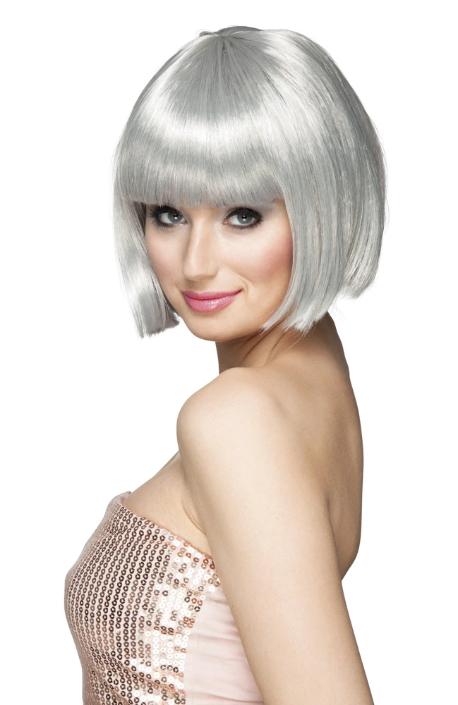 Zilvergrijs bobline pruik kort