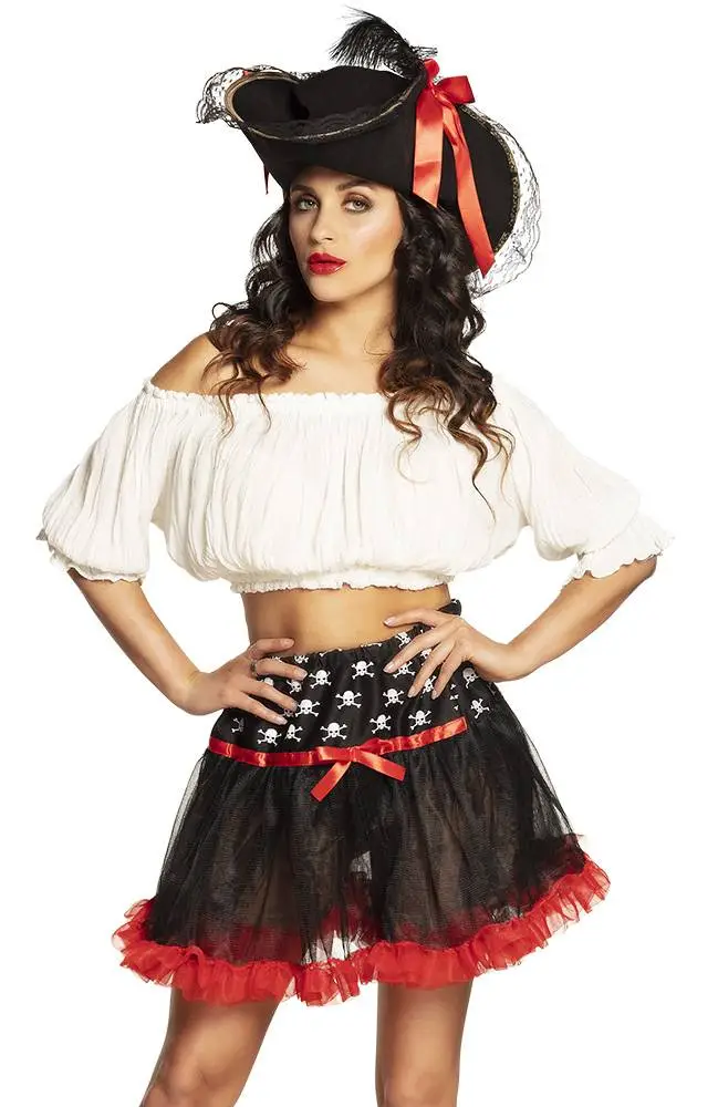 Wat een plaatje van een rokje is dit zwarte Piraten tutu. Verover de harten van de Piraten, want met dit Petticoats Piraat staan alle Piraten in een mum van tijd voor jou paraat! Bestorm het Piratenfestijn met het Zwarte Piraten tutuen je bent verzekerd van een mooi, sexy en vrouwelijk kostuum.